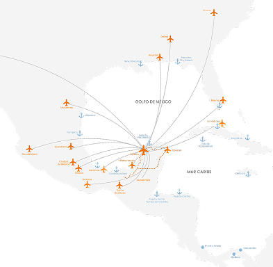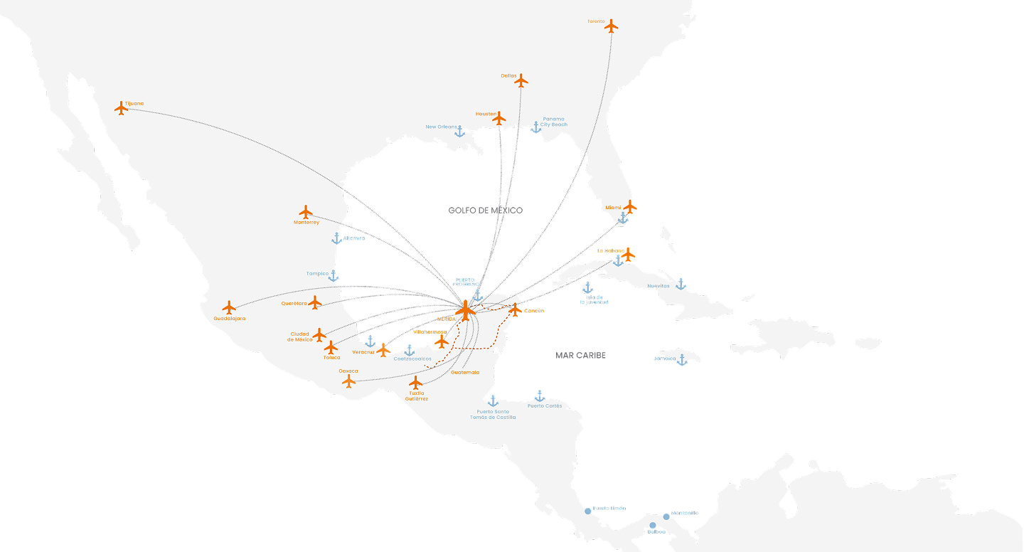 El área permite acceder a varias de las principales ciudades de México, Estados Unidos y Canadá de forma directa.